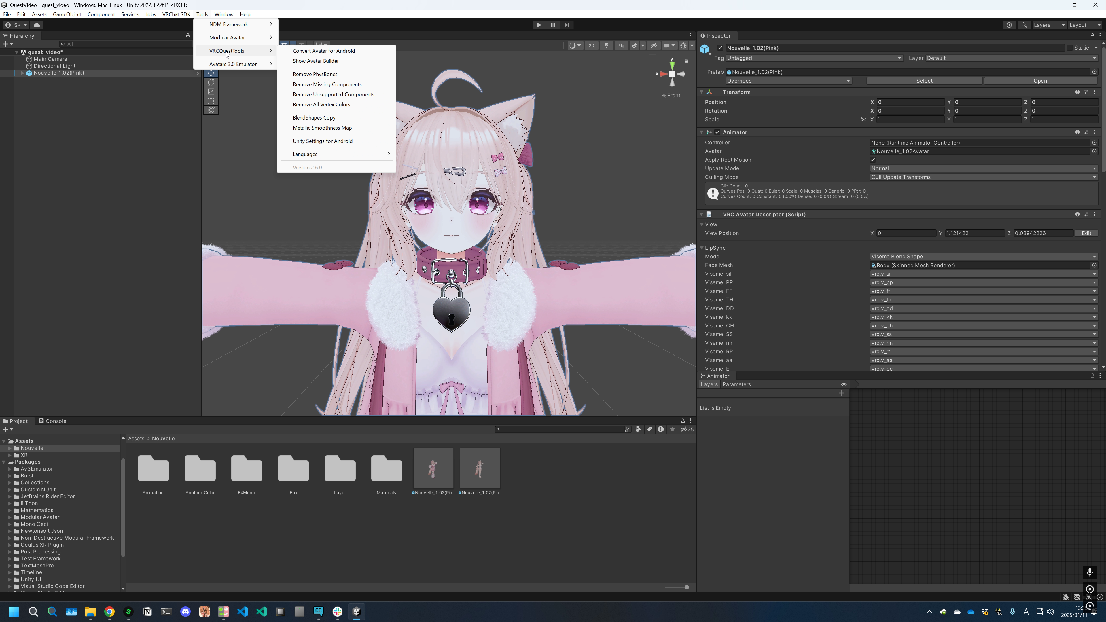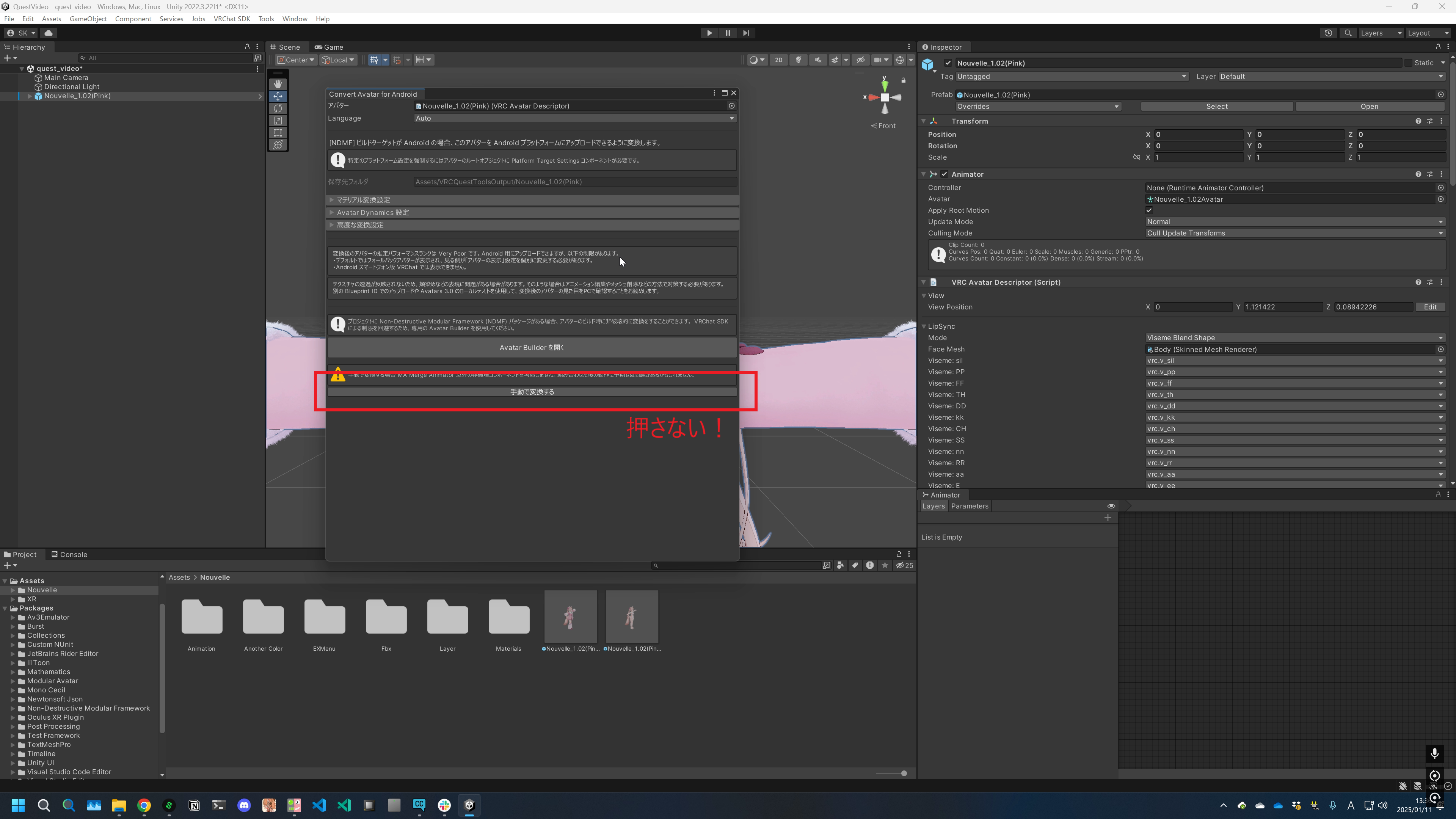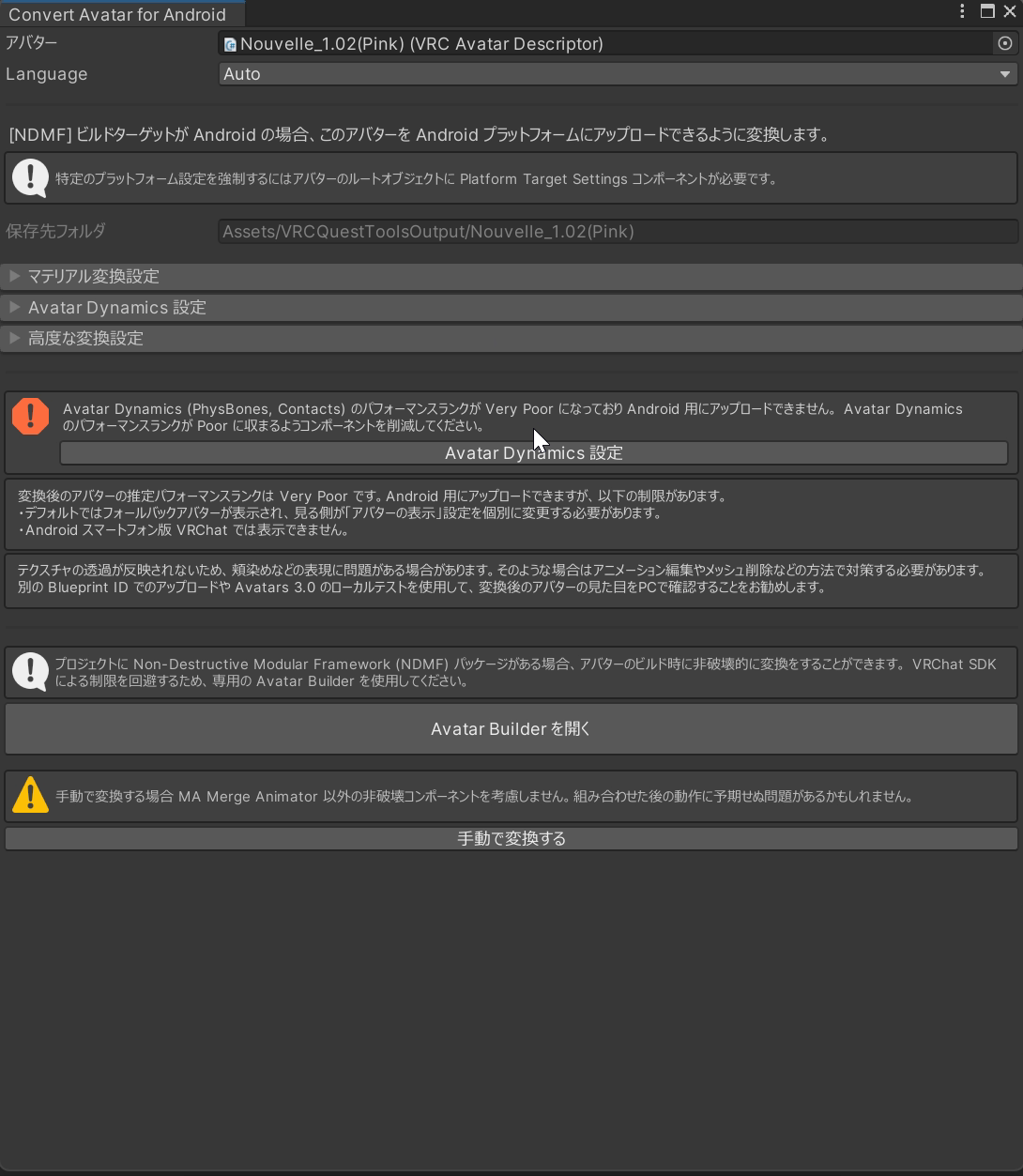 海苔化といった透過レイヤの問題はVRCQuestToolsの自動のシェーダー置き換えがうまく行かないことが問題です.