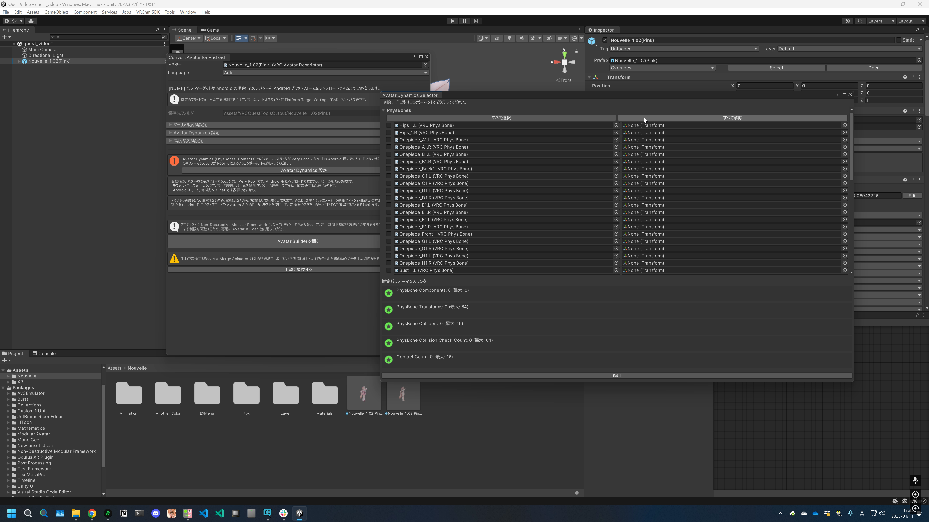 そのあと,透過がうまくいかないPCアバター用のマテリアルと先ほど複製してシェーダを変更したAndroidアバター用のマテリアルを選択します.