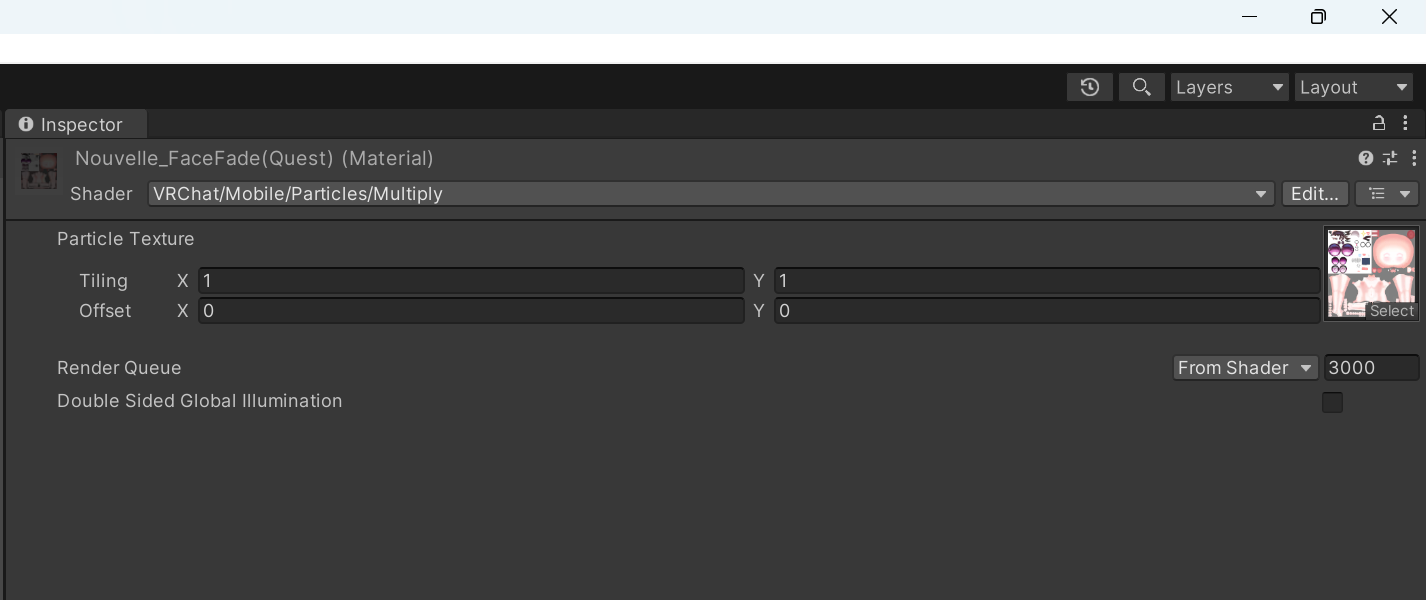 複製したらそのマテリアルのシェーダをVRChat/Mobile/Particles/Multiplyに変更します.