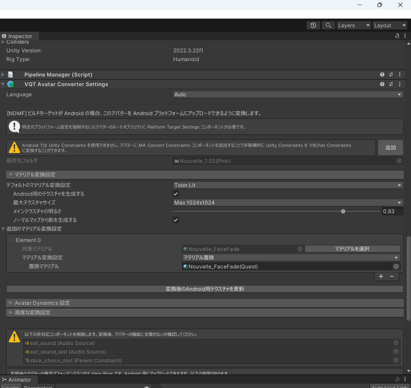 海苔化といった透過レイヤの問題はVRCQuestToolsの自動のシェーダー置き換えがうまく行かないことが問題です.